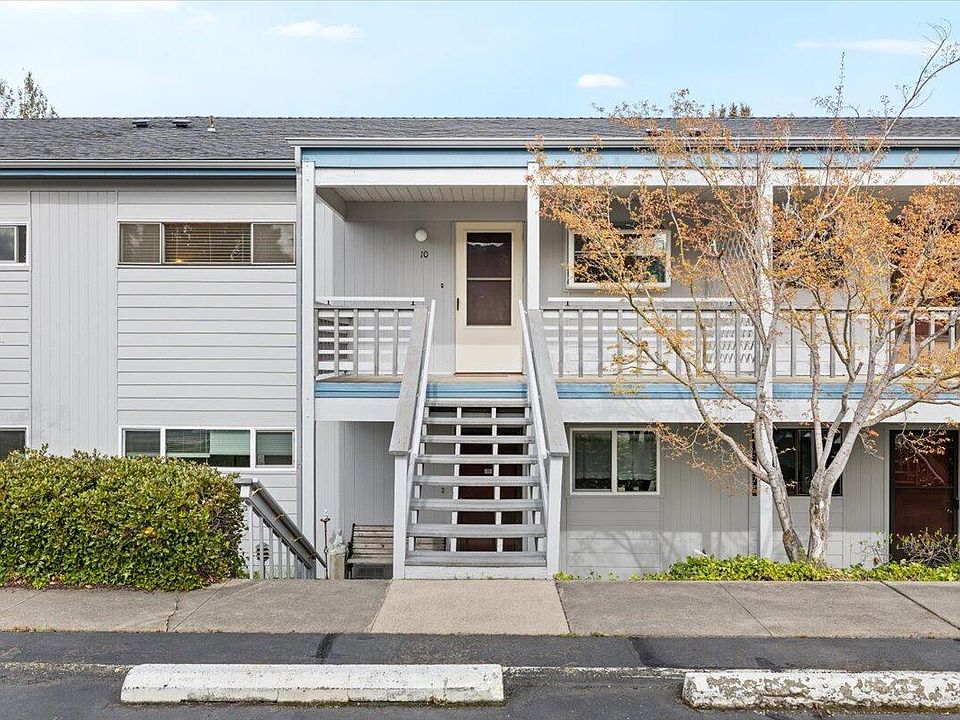 Quiet Upstairs Condo with spectacular views. Oak Knoll Golf course is right around the corner. Remodeled with beautiful new Hickory Style Flooring, all new stainless steel kitchen appliances, waterfall sink, butcher block countertops, and garden window. The bathroom is updated with double sinks, walk-in shower and newer washer and dryer. Water heater is also new. Off of the private 200 sq. ft. balcony is a storage area with workbench, pegboard, shelves and power_ The covered carport has additional storage cabinets. HOA covers water, sewer, garbage, landscaping and all exterior maintenance. All new plumbing and exterior paint just completed, and there are community raised garden beds for you to enjoy. Don't miss this rare opportunity to own an incredible condo close to shopping and recreational activities in a desired neighborhood.