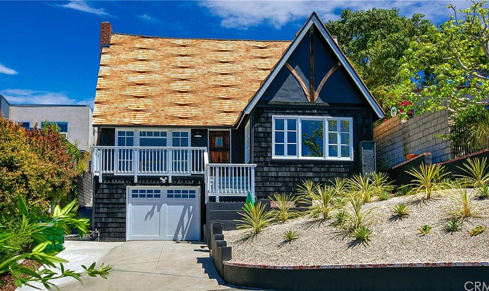 HISTORICAL COTSWOLD COTTAGE MASTERPIECE WITH EXPANSIVE OCEAN VIEWS! NEWLY RESTORED AND RECONSTRUCTED, THIS HOME HAS BEEN STYLISHLY DESIGNED WITH A PERFECT BLEND OF MODERN FUNCTIONALITY WHILE ENHANCING IT'S ORIGINAL CHARACTER. STORYBOOK STYLE ARCHITECTURE WITH TEXTURED STUCCO, SHINGLED SIDING, ORIGINAL LARGE MULTI-PANED WINDOWS, AND THE MOST OUTSTANDING EXTERIOR FEATURE OF THIS HOME IS THE MASTERFULLY BUILT WAVY RHYTHMIC SHINGLED PATTERNED, STEEP-PITCHED, MULTI-GABLED ROOF! OVERLOOKING THE VILLAGE, THIS SWEET SPOT LOCATION IS JUST THE RIGHT DISTANCE TO ENJOY THE VIEWS, BEACHES, AND SHOPPING. ORIGINAL HARDWOOD EXPOSED BEAMS SPAN ACROSS THE VAULTED CEILINGS IN THE MAIN LIVING AREA. NATURAL LIGHT AND NEW RECESSED LIGHTING, COUPLED WITH AN OPEN CONCEPT DESIGN, GIVES THE MAIN LIVING AREA A LIGHT AND AIRY FEEL. THE KITCHEN IS ALL NEW WITH NEW CABINETS, DESIGNER FIXTURES, & STAINLESS STEEL THERMADOR APPLIANCES. THE MASSIVE QUARELLA CALACATTA MARBLE WATERFALL KITCHEN ISLAND, SOFT WOOD FLOORING, AND EXTRA LARGE BASKET PENDANT LIGHT FIXTURES GIVES IT THOSE BOHO BEACH VIBES. THE LIVING ROOM SHOWPIECE IS THE FLOOR TO BEAM CUSTOM TILED FIREPLACE. HALF BATH FOR GUESTS WITH POCKET DOOR. THE MAIN BEDROOM HAS HIGH CEILINGS & MODERN FAN. THE MAIN BATHROOM HAS A SPA LIKE FEEL WITH DUAL VANITIES, RAIN-SHOWER & SOAKING TUB COMBO. 2ND BEDROOM HAS ACCESS TO A FINISHED ATTIC SPACE! BRICK WALLED ENTERTAINERS PATIO WITH ADDITIONAL SUN DECK & OCEAN VIEWS! THIS HOME IS "E" RATED AND MILLS ACT ELIGIBLE!