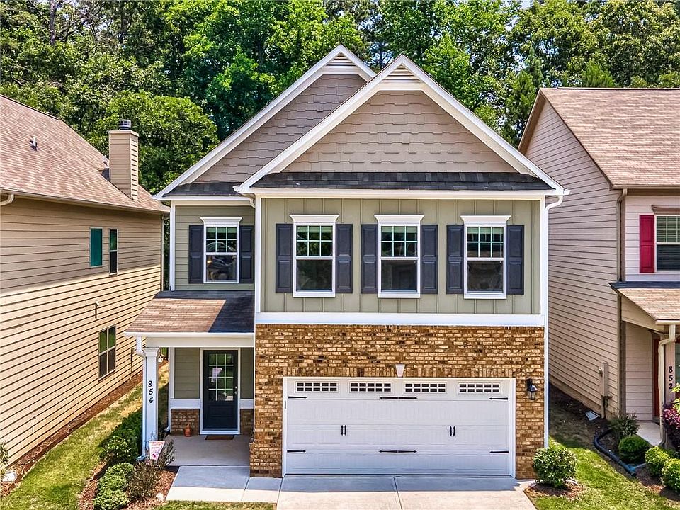 Welcome to your new home! This move-in ready house is located in a gated community, ensuring security and privacy. One of the standout features is its ample storage space. As you enter the main level, you'll notice 12' ceilings, adding a spacious feel. Crown molding and wainscoting detail add elegance. Electric fireplace provides cozy atmosphere. Throughout the house, you'll find stylish bronze plumbing fixtures, brushed nickel door knobs, and blinds throughout. Living room pre-wired for cable management, ensuring seamless entertainment experience. Kitchen features a black OTR microwave and electric range. SS dishwasher was replaced in 2022. Oversized walk-in pantry allows storage for all your food and small appliances. Engineered hardwood flooring on main, carpet and laminate upstairs. Oversized owner suite is a highlight w/ walk-in closet, double vanity, soaking tub, stand-up shower, and water closet. Bonus/loft area w/ closet that could easily be converted into 4th bedroom, should you decide to move the attic access. For added convenience, laundry is upstairs, saving you from lugging laundry baskets up and down the stairs. There are also linen and storage closets for additional organization. If you find yourself in need of even more storage space, there's a 6'x6' platform in the attic. The garage boasts overhead storage shelves, perfect for organizing your belongings. HVAC system is well-maintained and operates w/ two zones, ensuring optimal temperature control. The property is energy efficient, resulting in affordable power bills. The house is pre-wired with Gigabit fiber internet - the fastest speeds you can get residentially! Gutter guards have been added for extra hassle-free maintenance. HOA covers lawn maintenance and trash services, along with community courtyard w/ picnic table and benches for relaxing. Overall, this house offers a combination of modern features, storage options, and energy efficiency, making it the ideal home for comfortable and maintenance free living. Add the convenient location to I-575, I-75, 15 minutes to Downtown Woodstock, along with plenty of shopping, dining, parks and Lake Allatoona, this is a great place to call home. Don't forget to check out the virtual tour link!