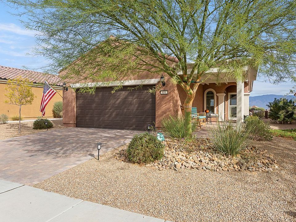"UPGRADE OVERLOAD".....Welcome to 854 Wranglers Ridge. Prepare to be impressed with the amazing choices in quality upgrades. Custom Brick Paver Driveway. Brick Paver entryway. Custom Designed Pergola over walkway to the front door. TILED THROUGHOUT THE ENTIRE HOME....stylish contemporary white porcelain tile floors make the rooms bright and light. Beautiful Granite Counters throughout the kitchen and bathrooms provide a soft - sublte - sleek tie in to the other colors that have been chosen throughout the home. Large - Stainless Steel Farm Sink in Kitchen with custom faucet. Stainless Steel Appliances make this kitchen pop. Custom additional can lighting in every room. Crown molding surrounds the living room. Living room and dining area look directly out to the backyard ...."the place you want to be". Master bedroom has bay windows that showcase the views of the mountains. Master Bathroom has custom desgined tiled walk-in shower along with granite counters. Guest bedroom has Murphy Bed that stays with the home. Covered back patio is beautifully designed with brick pavers. COME EXPERIENCE THE VIEWS. Don't wait 10 months to build. BUY TODAY !!!