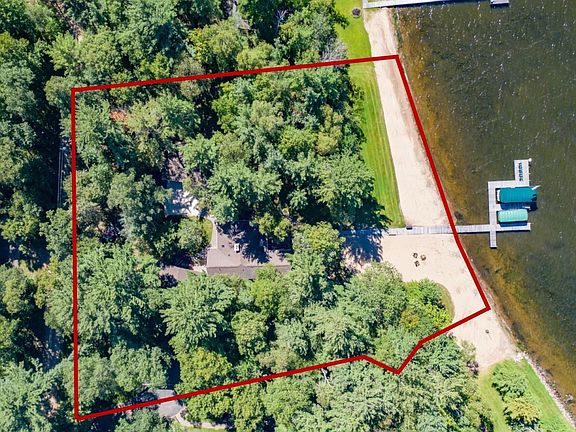 Nestled under the pines is this Whitefish Lake property situated on 197 ft of west facing excellent sand frontage in the Big Whitefish Narrows Association on the Whitefish Chain. Wooded 1.25 acre lot boasts gradual elevation to the lake, excellent sand beach, and Westerly sunset lake views. Up North feel log sided main house features one level lake living, floor to ceiling stone fireplace, Knotty pine vaulted ceiling and walls, log beams, hardwood floors, and a lakeside main floor master bedroom suite. Log sided guest house features Knotty pine vaulted ceiling and walls, kitchenette, living area, bathroom, and bedroom. Log Sided bunk house offers additional sleeping accommodations. Enjoy a meal with friends or family on the lakeside deck. Gather under the stars around the lakeside fire pit on the beach. Detached 24 x 36 2 stall garage with workshop offers storage options for your lake toys. Adventure out on the Whitefish Chain for a day of fun boating, fishing, swimming and more.