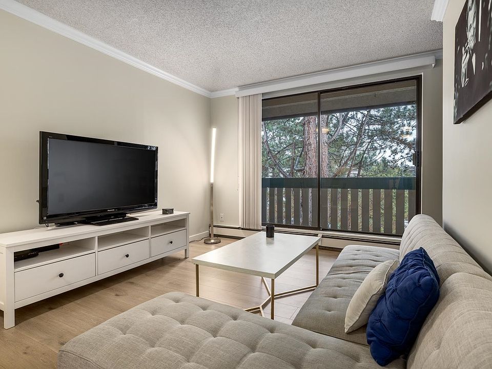 Completely renovated top floor one bedroom apartment in a prime Richmond location. Enjoy this freshly painted, bright east-facing home with white oak laminate and tile flooring, crown mouldings, a large storage room, and a huge covered balcony for year-round BBQ's. The kitchen features stainless steel appliances, quartz countertops, stone backsplash, and white shaker cabinetry. Belmont Park is a well-maintained building with new piping (2014), roof (2012) and has plenty of amenities including tennis courts, pool, hot tub, sauna, exercise room, and more. Thrive in central Richmond with Richmond Centre, restaurants, shops, parks, schools, and Canada Line steps away. Great opportunity for first-time home buyers! Parking included.