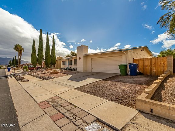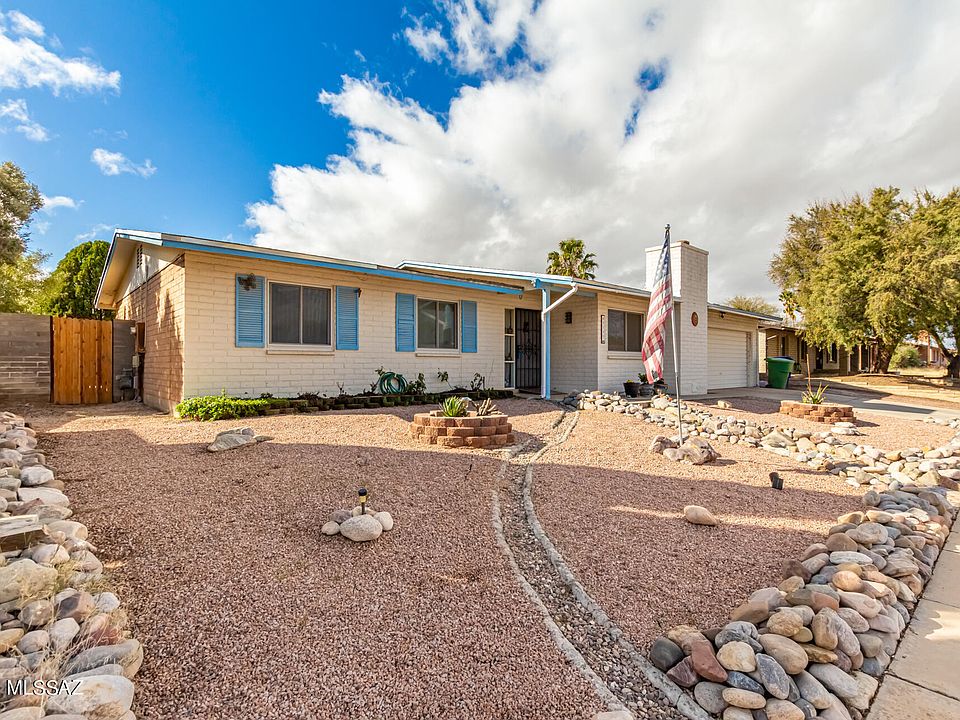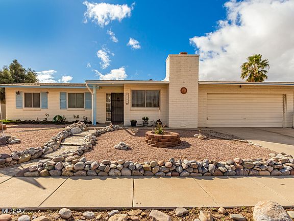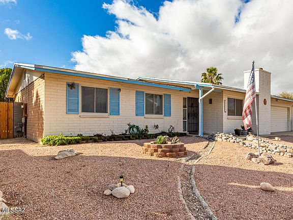 Come see this charming home now or sale in Tucson! It offers 4 beds, 2 baths, and 2 car garage, and easy-care front yard. Inside, you'll find a perfectly-sized living room featuring a warm fireplace and wood-look floors. Continue into the large eat-in kitchen featuring tall grey cabinetry, beautiful granite counters, and stainless steel appliances. The carpeted primary bedroom boasts an ample closet and its very own bath with a tiled glass shower. Finally, the spacious backyard includes a covered patio, extended paver seating area, and a convenient storage shed! Don't miss this amazing opportunity! Come, see it!