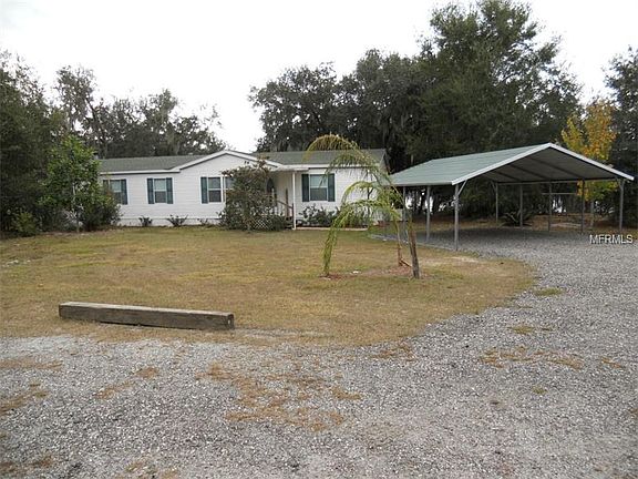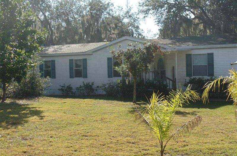 LAKEFRONT HOME ON NEARLY 2 ACRES. Situated on beautiful Lake Buffum in the heart of Central Florida. Approx. 1500 acre lake with great fishing and water recreation. Palm Harbor Home with lots of extras. Great room with wood burning fireplace, family room, Large master suite, split bedroom plan, inside laundry, eat-in kitchen and formal dining. Great views of Lake Buffum from the deck. Motor Home garage with 6 inch slab. New AC unit and refrigerator in 2014. Mature oaks and Florida scrub allow for lots of privacy. Private dock for your boat. Enjoy the peace and quiet of rural lakefront living yet close to town and amenities. Can be purchased as a package with home next door- P4702870.