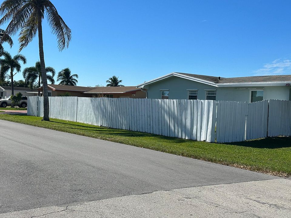 Remodeled home ; both bathrooms have been redone and Master bedroom flooring . Custom cabinets just refaced, granite counter tops. All brand new stainless steel appliances. tiled thru out except 1 room which has wood laminate flooring. All new verticals thru out house Front porch with large circular driveway that fits many cars, trucks, boat and RV . Covered back terrace with partial lake view and newly redone landscaping. Fenced in Big back yard with gate that allow entrance to store boat, RV , or big truck since there is no HOA . Very family oriented neighborhood with good schools . Centrally located, newer A/C unit still under warranty and new flat roof. Move in will require 1st month, 2 month security. Tenant will be responsible for all utilities, lawn care and extermination