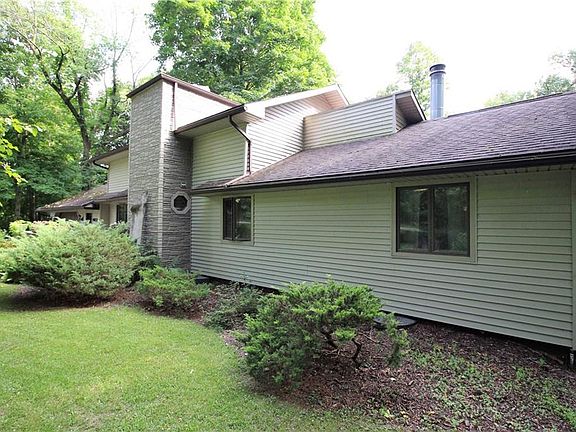 ONCE IN A LIFETIME OPPORTUNITY! Here is your chance to own your private piece of heaven on Oatka Creek! This custom built home sits on a unique lot that features 2 studio outbuildings and numerous areas to relax and enjoy the view! Large entry foyer leads to living room with knotty pine vaulted ceilings and wood burning fireplace. Huge dining area great for holiday dinners overlooks the creek. Eat in kitchen with appliances included has breakfast bar and entertaining space. Enclosed porch off kitchen has built in AC! 2 bedrooms and a full bath complete the first level. Upstairs you will find a loft style master suite with walk in closet and private bathroom! The basement is fully finished with wet bar, rec-room, bedroom and full bath! Call today to make an appointment to see your new home!