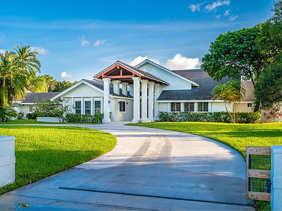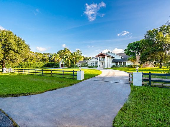 Serene sanctuary in Boca Ratons Horseshoe Acres. Private gates open to 5 acres of lush, tropical landscaping. Fully fenced with security gate, 150 fruit and clusia trees frame the property leading to the 7000- SqFt estate.Luxurious main house features 4 bedrooms, gourmet kitchen, open living room, formal dining fireplace and exercise room. Unique appointments include rare walnut flooring throughout the home made from 100-yr old Amish barn wood. Step outside for the perfect relaxing getaway or ideal spot for entertaining. The Equestrian Estate is located in the private community of Horseshoe Acres situated on over 190 acres of lush tropical landscaping and tree-lined streets. This equestrian community is one of the only neighborhoods in Boca Raton that allows residents and homeowners to raise horses on their private land.This equestrian compound overlooks a magnificent barn featuring 5 paddocks, 7 stalls, 2 interior wash racks, tack up stalls, office, grooms quarters, feed room, tack room and private trails. Covered walkway leads to the 3 bedrooms, 3 bath guesthouse with full kitchen and large living area.