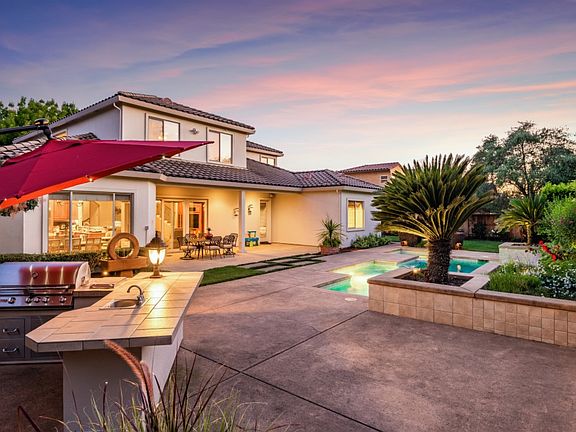 Beautiful Cape Cod style Douglas Ranch home with 4,288 square feet featuring 4 bedrooms, 3.5 bathrooms, office and bonus room (possible entertainment room or 5th bedroom) in cul de sac. Downstairs master suite with fireplace, jetted tub, dual-head shower and backyard access. Formal office also on main floor. Three bedrooms and large bonus room upstairs. Well-appointed with stunning architectural detail and craftsmanship. Chef's kitchen featuring stainless steel appliances, double oven and two dishwashers, large island, granite counters, wet bar, wine fridge, butler's pantry and walk-in pantry. Great room concept off the kitchen, with formal living/dining room. Enjoy the private backyard oasis with covered patio, pool with waterfalls, spa, outdoor kitchen, garden beds, and grassy area for play. Four-car garage. Award winning Eureka and Granite Bay schools. Enjoy all the luxury, tranquility, and privacy this gorgeous upscale estate has to offer!