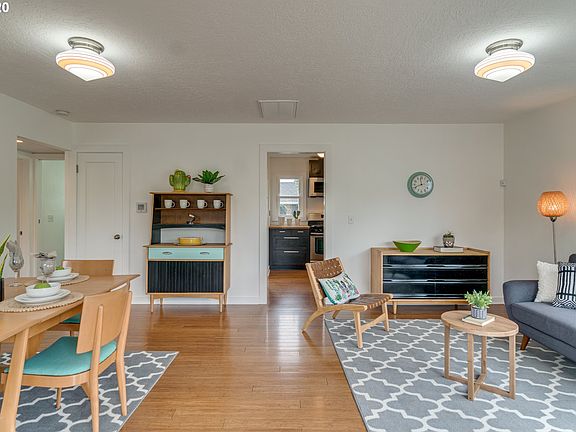 One level accessible ranch style home on a corner lot! Beautiful strand woven bamboo floors throughout the bright space. Double vinyl windows for day-to-night comfort. Central gas heat & AC, tankless water heater & gas appliances. Private, fenced backyard with deck and raised garden beds. Detached garage has electricity. Roof, siding, and paint on house & garage all upgraded in past few years. Lovely well cared for home in a quiet neighborhood, close to everything Montavilla has to offer.
