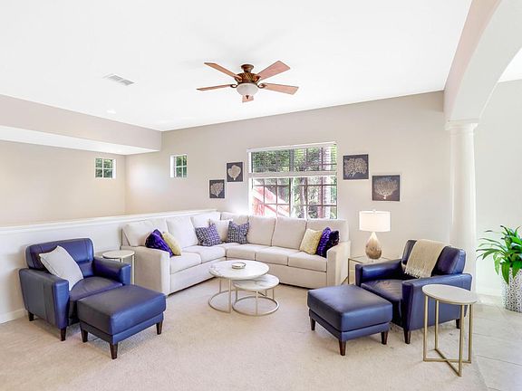 Three bedroom, 2 car garage condo in a resort style community full of amenities. Fully furnished condo with all brand NEW furniture and household items. New hardwood floors and paint throughout. Screened in lanai with lounge furniture to watch the stream and fountains throughout the community. Available to rent for 4 months, preferred (3 months will be considered). Conveniently located in walking distance to Coconut Pointe mall shops, restaurants and movie theatres. 15 minute drive to Bonita Beach and Lover's key. Close to Naples and Fort Meyers. Kayak and boat rentals, and mini golf nearby. Master bedroom and second bedroom each have a king bed and bedroom 2 also has a queen sleeper sofa. Bedroom 3 has bunk beds with twin and full bed. $7,500/month December and January, $5,000/month April-November. Feb-mid April 2025 is currently rented. Call/email with any questions. Use of community includes all access for renters. This includes multiple pools, hot tub, club rooms, fishing pier, bocce, basketball, bike path, tennis, etc. Location, location, location - prime location that connects to Coconut point mall and private road within walking distance. Utilities included and use of the garage including one parking space in the garage. Second parking space in the garage is occupied by golf cart. April through November cost $5,000/month December and January cost $7,500/month HOA application and lease require. We will prefer a two month stay.