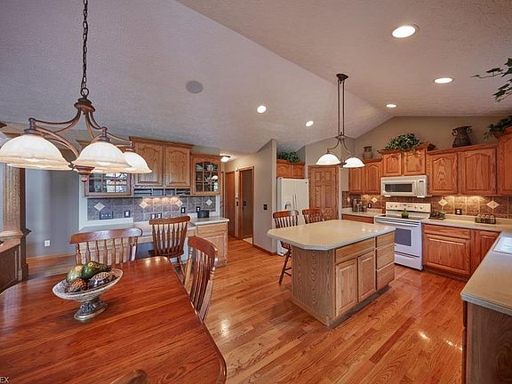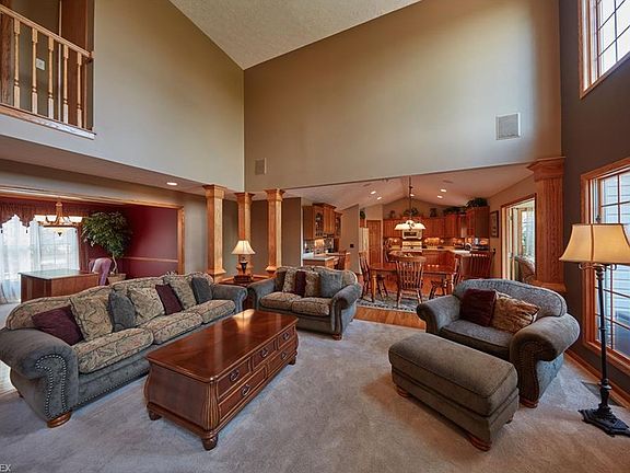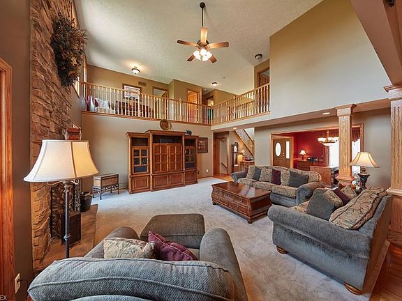 This home is a showplace! Enter thru the etched glass front door to the two story foyer has gleaming oak hardwood floors, cat walk on the second floor, and opens to the two story great room with a stone fireplace. The kitchen is in full view with Corian counters, glass display cabinets, a large center island breakfast bar, wood floors, tile backsplash, under cabinet lighting, and vaulted ceilings with recessed lighting. French doors lead to the bright sunroom with its doors that open to an enormous trex deck, stamped concrete patio, and on of the largest lots in St. James. The first floors master features a tiled bath with soaking tub and walk in closet. The three upstairs bedrooms each have walk-in closets and share the loft. The 13 course lower level is the same quality that you see thru out the home. There is a spacious family room with a wet bar, multiple recessed lights with dimmers, 1/2 bath, and exercise room with rubberized flooring. Some of the additional features include: six panel solid wood doors, Pella wood windows and sliders, whole yard sprinkler system, exterior accent lighting, whole house audio, prewired security, and a three car garage. St. James features side walks with street lights, a pond, and an active homeowner's association. This home will not disappoint.