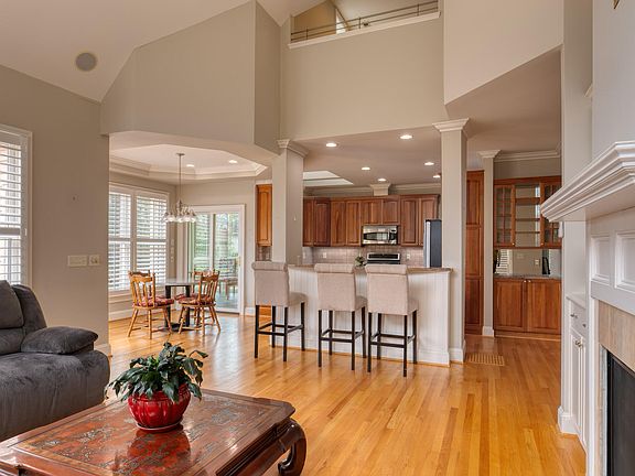 Stunning home in the gated community in Gov's Club of Morehead Forest. On the 3rd fairway of a Jack Nicholas Signature Golf Course. Open floor plan with living and kitchen area boasting views. Primary bedroom on main level with huge WIC. Kitchen and breakfast area flow to glassed porch overlooking the landscaped rear yard out to the golf course and opening to the new deck. Separate dining room with Schonbek chandelier with Swarovski crystals. Office with incredible built ins. Second level contains a cozy loft and two generously sized bedrooms. There is also a walk-in cedar closet and large accessible storage areas. Oversized garage with premium garage flooring. Ideal level lot on a cul de sac in neighborhood close to UNC, Duke, RTP. Community amenities available with membership to Gov's Club Country Club. Extras include new architectural roof, solar panels, water treatment with reverse osmosis. See feature sheet for all the updates! Irrigation system conveys as is- would need repair.