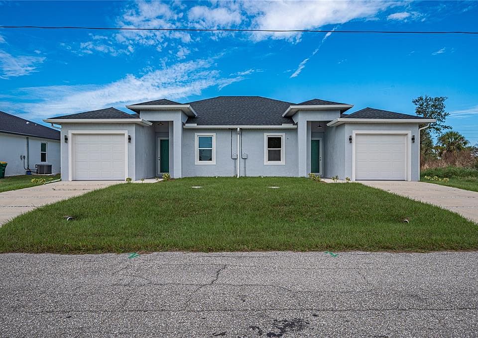 Discover this modern duplex, offering two 3-bedroom, 2-bath units, each with 1,190 sq. ft. of beautifully designed living space. Built with quality craftsmanship and energy-efficient materials, this property combines style, functionality, and low-maintenance living. The open floor plans, high ceilings, and elegant finishes create a bright and inviting atmosphere throughout. Conveniently located near shopping, dining, and Gulf Coast beaches, this duplex is a fantastic investment opportunity in one of Port Charlotte’s growing neighborhoods.
