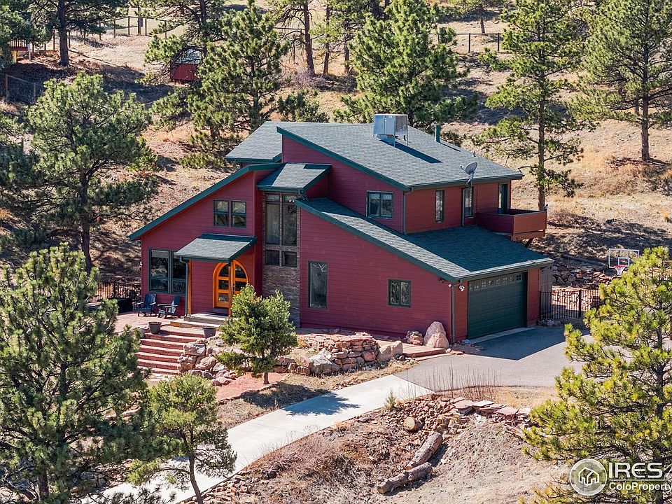 This stunning foothils retreat is more than just a home; it's your personal haven nestled in a serene hillside setting and only 10 minutes from Boulder. Imagine waking up to breathtaking views of the sunrise right from your own patio, or enjoying a peaceful moonrise from the comfort of your upper-level loft. Meticulously designed down to the studs with the finest finishes. With 2,197 square feet of well-thought-out living space, every corner of this residence exudes elegance and style. The open and airy layout features soaring ceilings and large windows that flood the space with natural light, creating a warm and inviting atmosphere.The heart of the home is the fully equipped chef's kitchen, boasting sleek stainless steel appliances, including a large range, and a wine fridge. Custom cabinetry and an expansive stone island provide ample space for entertaining.The primary bedroom is a true oasis with its ensuite bath, complete with a luxurious stone slab vanity and an indulgent shower. Step out onto your private deck and take in the tranquility of the surrounding hillside-a perfect spot for morning coffee or evening relaxation. Outside, the generously sized lot offers a flat, grassy front yard ideal for outdoor activities. Multiple patios and decks provide plenty of space for entertaining, hot tubbing, or simply soaking in the stunning natural surroundings. Adventure enthusiasts will appreciate the homes proximity to Boulder County's best hiking trails, cycling routes, and horse facilities. For those who love a good game of golf, the Lake Valley Golf Club is just a short five-mile drive away. And after a day of exploring, why not treat yourself to a delightful meal at the nearby Greenbriar Inn, celebrated for its charming patio and irresistible happy hour?This exquisite home is not just a luxury escape; it's the perfect basecamp for creating lifelong memories. Don't miss your chance to own a piece of Boulder paradise!