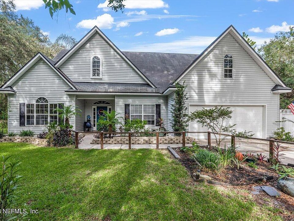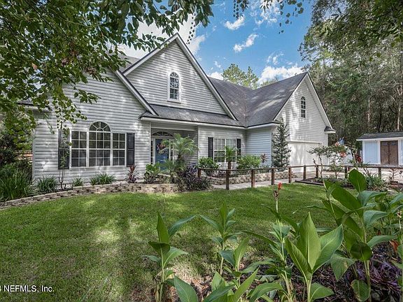 Are you looking for a place to Bring the Horses? A unique opportunity in a highly sought after location. Very private country setting. 1.28 acers in the Wildlight district. Beautiful 4 bedroom 2.5 bath custom home, Open floor plan with vaulted ceilings. Craftsman style with custom builtins and attention to detail throughout. Hardwood and tile floors. Large eat in kitchen with breakfast bar, Split bedroom plan. Master bedroom with a walk in closet. Nice size secondary bedrooms and 4th bedroom with on suite 1/2 bath. Sunroom/office/Florida room adds the perfect amount of space to spread out. Gated entry, 2 stall horse barn, Round Pen, Tack room with heating/cooling, and a feed room. It is ready to go for your horses. Relax under the pergola and enjoy the peacefulness.