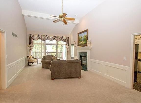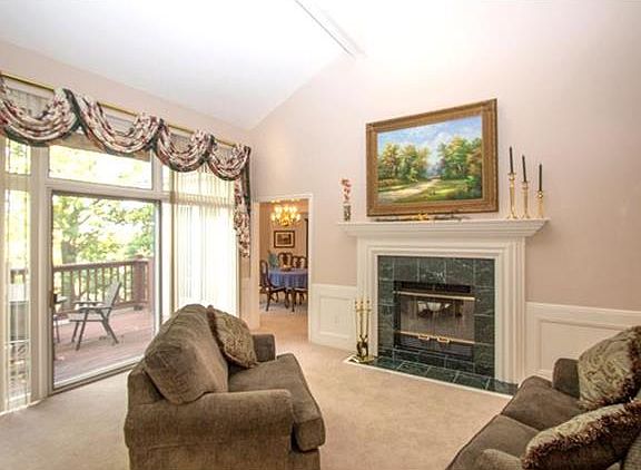 Stately, Well Maintained Villa with all the Extras!! Granite Counter Tops, Stainless, Profile Appliances, Including Convention Oven, Deck with Retractable Awing, Beautiful Wood Molding and Finishes, Well Appointed Rooms and Spaces. No Detail Left to Chance. Eat-In Kitchen/Hearth Room with See Through Fireplace. High Ceilings, Backs to Green Space, Lower Level includes Wet Bar and Spacious Family Room. Loads of Storage. Two Car Garage includes build-in storage. High End Window Treatments. Move In Ready