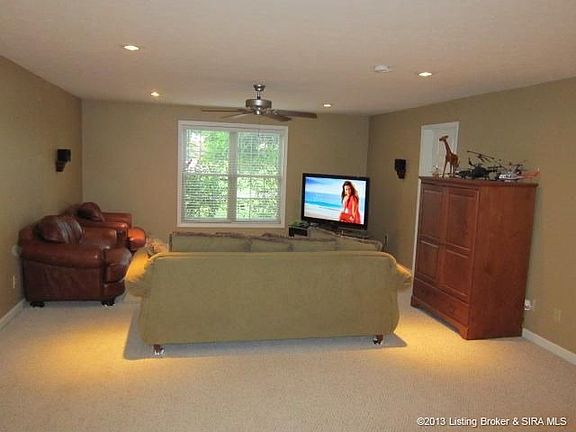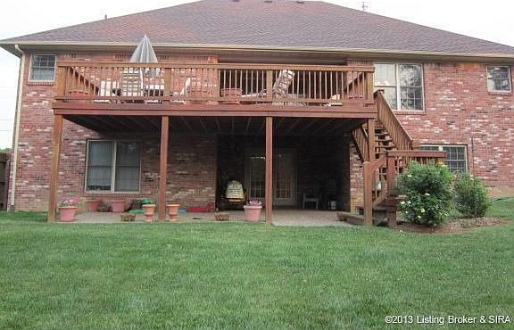 Gorgeous all brick 4 bedroom 3 full baths in Floyd Central school district with full finished walk-out basement that has loads of space. Doors from kitchen and Master bedroom walkout to covered deck. Hardwood in foyer and kitchen/dining areas, 3 sided fireplace in spacious vaulted Great Room. Master bath has corner whirlpool tub and separate shower plus 2 walk-in closets. Large lot with covered deck overlooks spacious backyard. 2 car attached side entry garage that allows entrance thru a laundry room to the kitchen. Wonderful opportunity here for someone that needs lots of space in the finished basement that has a huge family room, 4th bedroom and an office/playroom ready to move into! Call today for your private showing.