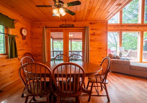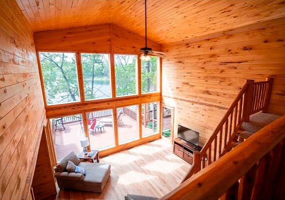 in 2023. A natural gas fireplace is the centerpiece of the loft that overlooks the lake. The 2500 feet of living space included lots of storage space. An 8x10 newly shingled and painted shed provides additional space. A 12x24 dog run is attached to the garage with a doggy door directly from the garage to the pen. Just steps down the hill from the walkout basement is a campfire ring with built-in seating for at least 10 s'more snackers.