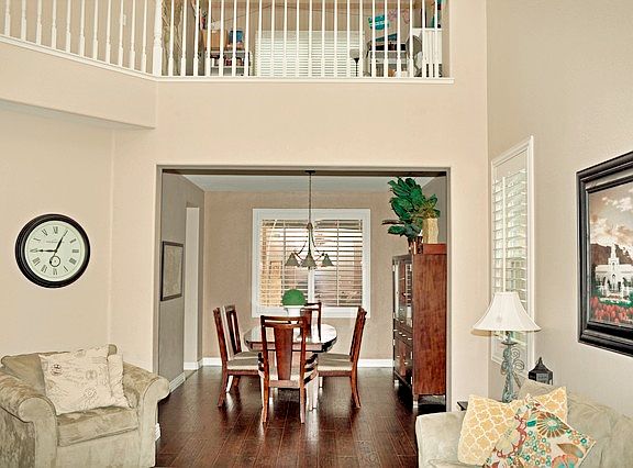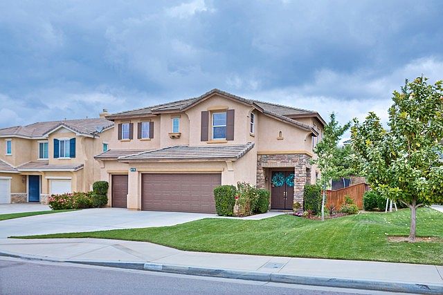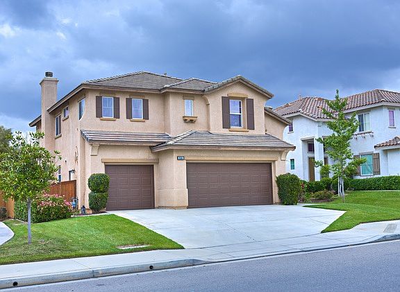 Immaculate pool home with 3 car garage located in the community of Orangecrest. The double door entry leads to the living room with a cathedral ceiling, adjacent to the formal dining room. The first floor has plantation shutters throughout and also features upgraded laminate and travertine floors. The upgraded kitchen has granite counter tops and stainless steel appliances, double oven, microwave, 5 burner stove, and dishwasher. The kitchen opens to the family room with a fireplace. The first floor inside laundry room is complete with a sink and shelves. The second level boasts a large master bedroom with his and her walk in closets. Three large secondary bedrooms with walk in closets, ceiling fans, and designer paint. There is also a loft that can be used as an office. The good sized backyard with mature landscaping has a swimming pool and spa, covered patio and a play area. There is a removal gate for safety. This home sits on a well manicured quiet street, close to a park, shopping centers, schools, and a library. Must see to truly appreciate all of the upgrades in this turnkey home!