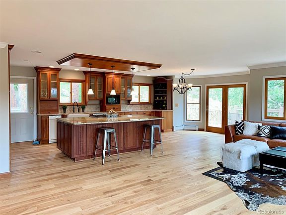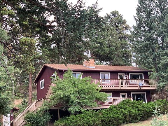 Welcome to your beautiful mountain home that is carefully perched in a secluded mountain setting,nestled among rock out croppings and beautiful pine trees.This south facing raised ranch has been nicely updated, with new carpet, new hardwood ,new paint , renovated baths and a beautiful custom kitchen .This home offers amazing wrap around decks on three sides, perfect for entertaining.The yard has a fully enclosed space to keep your animals safe and a treehouse for so many adventures ! The kitchen is the heart of the home and this one will not disappoint, the large open space is a great place to entertain . From the warmth of the natural cherry cabinets to the oversized island and built in hutches you will never want to leave. Enjoy those cozy winter days by the fireplace watching the snow fall, while your family is baking in the kitchen. Walk down the hall to find two large bedrooms and a full bath that has been beautifully updated . The entire upper level has newly installed Canadian ash hardwood floors, and fresh new paint . The master bedroom is surrounded by large windows,inviting the outside in.The main level also has a generous family room with a wood burning stove, perfect for playing games with the family or watching your favorite movie. The house is equipped with a generator that will provide power in case of a power outage. You can easily work from home, with the high powered internet. If that is not an option, keep in mind it only takes 12 minutes to get to c-470. Location Location Location ! List price reflects recent appraisal.