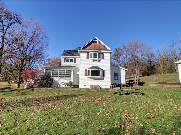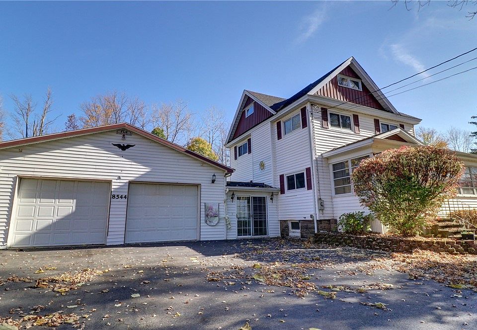 This charming 3-bedroom, 2-full bath home at 8544 South St in Port Byron is a rare find! Situated on a generous 1.4-acre lot, this property offers a peaceful setting on a quiet village street. Inside, you'll find hardwood floors, an eat-in kitchen with ample storage, and first-floor laundry. The full walk-up attic provides lots of potential for additional living space or storage. You'll love the enclosed wrap-around porch, perfect for enjoying your morning coffee or relaxing in the evening. And with an attached two-car garage (with two heat options), two barns (16' x 48' and 30' x 48'), and three shipping containers, there's no shortage of storage space. This property also offers a newer boiler, natural gas, and public water and sewer. Come see all that this wonderful home has to offer!