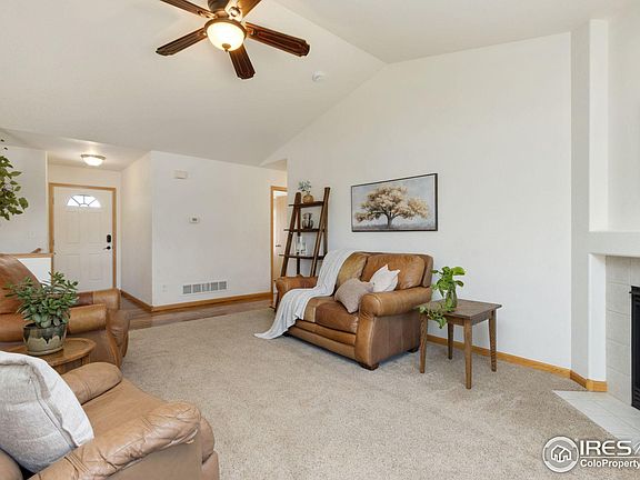 A prime central Wellington location! This beautiful Ranch style home in Wellington Pointe, with a large 0.27ac East facing lot is waiting for you! This 4 Bed, 3 bath home, features an inviting open floorplan with vaulted ceilings and large windows to offer lots of natural light. The fresh finishes and a gas fireplace create a warm and inviting atmosphere. The charming kitchen is equipped with a small center island, oak cabinets, Corian countertops and backsplash and stainless-steel appliances and is perfect for casual dining or hosting friends and family. A main floor Primary suite has a 4-piece bath with a tiled shower and walk-in closet. Two additional main floor bedrooms and Laundry offer convenience and simplicity. Downstairs you will find a finished basement with a cozy Family Room with a thermostat-controlled gas stove, 1 additional bedroom and full bath that gives you plenty of room for family and guests! The attached three-car garage provides ample storage and space for your cars. A patio and enclosed backyard provide a place to play and the garden beds are perfect for growing your own garden. Keep the grass green with the HOA non-portable water for irrigation. A Convenient location near Eyestone Elementary & new Wellington Middle/High School and minutes away to I-25 if you need to commute. Just move in and enjoy!