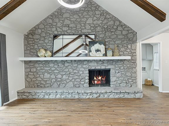 Hey, it's a match! This home has recently undergone a major transformation and is ready for you to make it yours! The location of this house is exceptional. With access to major highway systems less than a block away, you are only a few minutes away from all the best of Tulsa! Sitting on a corner lot with mature trees, you will also experience the benefit of an oversized driveway that could host those summer toys you've been eyeing. While the exterior and location offer great benefits, I'm confident that you won't be disappointed by the interior of this home. The living room is quite spacious with exquisite vaulted ceilings and a large fireplace. Moving along to the kitchen, you will find quartz countertops, lovely backsplash, and newly installed appliances. Entering the guest space there are two bedrooms complete with new lighting, new paint, and new carpet. The guest bathroom experienced an overhauled with new plumbing fixtures, light fixtures, ceiling height tile shower, new tile, and new vanity. The primary suite boasts great updates also! Again including flooring, paint, and lighting updates. The primary suite bathroom has also been completely updated with new plumbing fixture, ceiling height tiled shower, new floor tile, new paint, new light fixtures, new vanity, and new shower glass. This home has a newer furnace and a brand new a/c condenser. This is truly a place you can walk in, unpack, and get to making the memories you dreamed of in your home. Schedule a tour ASAP! Owner/agent