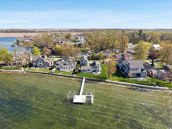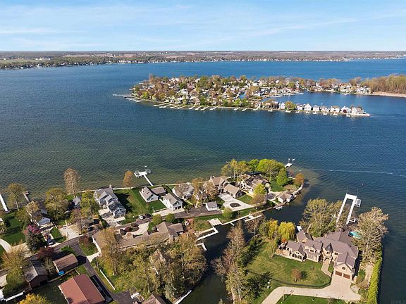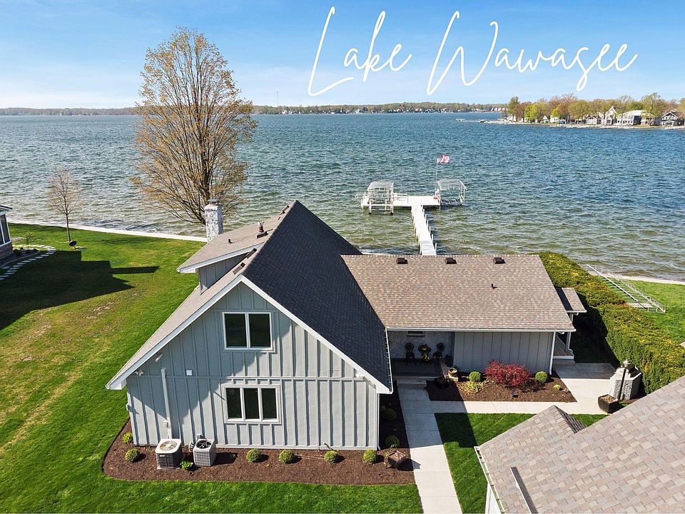Escape to your very own slice of paradise on Lake Wawasee featuring 80’ of lakefront & stunning sunset views plus large fully equipped guest house offering channel and lake views—sold turnkey w/all furniture so you can move right in & start making memories today! The ultimate in luxury lake living, tucked away close to end of private road in highly desirable Black Point neighborhood w/no through traffic adding to secluded feel of quiet & peaceful area. Excellent for entertaining family & friends w/ total of 6 bedrooms & 3.5 baths, main house has 3 bedrooms, 2.5 baths & 3120 sqft while guest house contains 3 bedrooms, 1 full bath & 1156 sqft w/kitchen & living space. Built in 1983, entire gorgeous property has since been professionally remodeled w/newly updated appliances, modernized kitchens, updated baths, new flooring & new windows which complement fresh, clean & effortlessly chic atmosphere. Sure to charm from the moment you arrive, attractive exterior is neat & tidy w/precision landscaping & oversized cement apron for added parking in addition to garage/guest house w/covered parking. Inviting covered front entry w/beveled glass & matching sidelight allow plenty of natural light into vaulted foyer w/chandelier. Head on back to welcoming open concept main living area w/fantastic waterfront views from 4 glass panels & sliding doors to walk out patio. Cozy living zone stars floor to ceiling white rock fireplace w/ accent wainscoting & exposed beams that carry over into kitchen. Chef’s delight kitchen is on trend w/SS appliances, tile backsplash, abundant cabinetry, quartz counters & central curved dual height island w/ seating. Formal dining beside kitchen great for dinner parties or family meals. Stacked laundry & stylish half bath off dining. Spacious main floor primary bedroom w/dual sink vanity ensuite, glass walk-in shower & private commode. 2 more comfortably sized bedrooms upstairs (1 w/walk-out lakeside deck) as well as shared full bath & ample storage throughout. Relax by water on generous patio & enjoy serene views w/ brand new professionally installed dock system which can accommodate multiple boats & other lake toys. Rare sandy bottom beach perfect for swimming. Other improvements include whole home generator & crawlspace professionally sealed w/ vapor barrier moisture control system, ensuring clean, moisture-free easy to access crawl space. Prestigious & beautiful, secure this hidden gem by reaching out today!