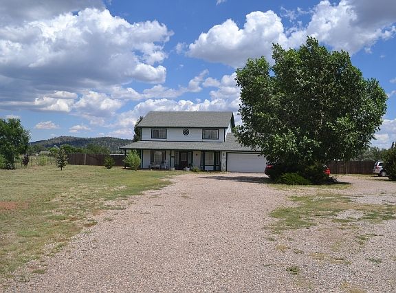 Beautiful home with breathtaking views of Mt.Elden from your front porch. This fully fenced 3 acre, country charmer has everything. From the wrap around porch to the attached and detached garages. The back yard has a stone patio and pergola with plenty of vines to provide shade and a wind break. Great family home with room to grow or come retire and enjoy your grandchildren. Large dining area to enjoy family dinners or just sit and play games. Attached garage is heated and has a room which could be used for a 4th bedroom, recreation room or very large office. This room is not included in the sq. footage. Detached garage with shop for the guys to store all the toys they will need to go to the near by cinders and play. Come enjoy the wide open spaces!! Owner is listing agent
