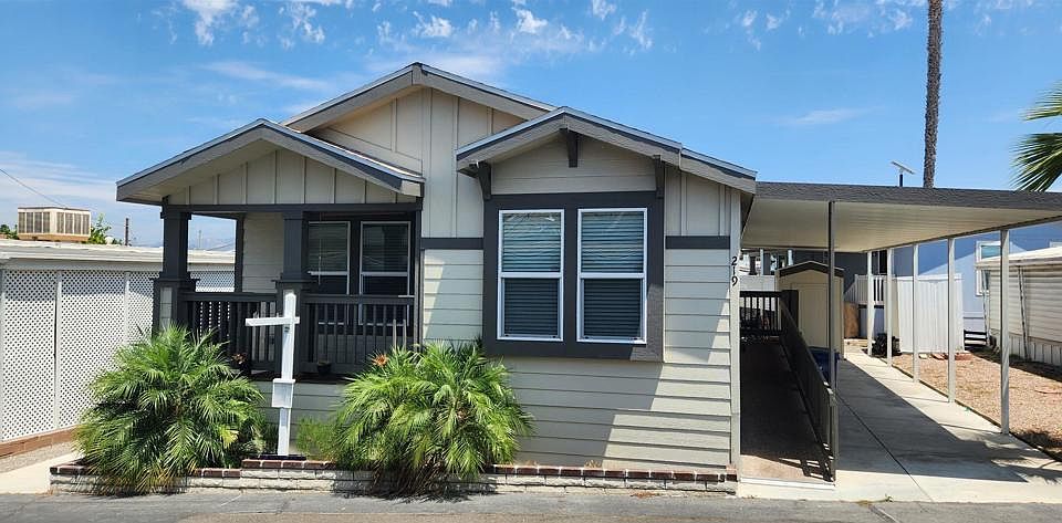 Newer home in a senior community. Spacious 2 Bedroom 2 Bath 1136 sqft with wheel chair accessibility from carport. This home features an open floor plan, large open kitchen, lots of cabinet space, dining area, eat at counter, dual pane windows, vinyl plank flooring and carpet through out. The primary bedroom is spacious and features a walk in closet, private bathroom and walk in shower with hand rails. Close to shopping and freeways!