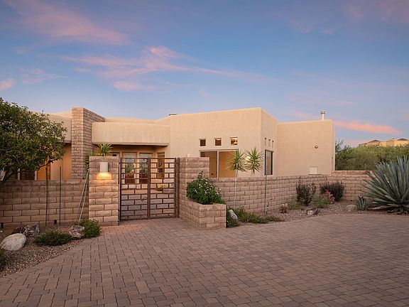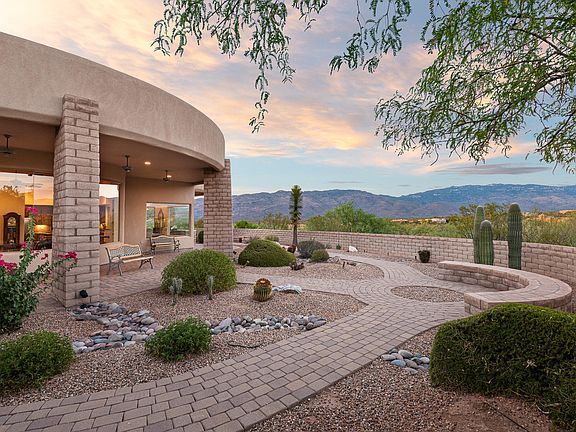 Exceptional Mountain Views from this 2006 custom desert contemporary home located within the gates the highly desirable community of Coyote Creek. Uncommon privacy on this secluded 1.73 acre in a pristine setting. Driveway & motorcourt completed w/pavers. Custom metal gates lead to charming courtyard. Enter the home to find walls of windows framing close-up Rincon mountain views. Gourmet kitchen w/ large center island, granite counters, custom cabinetry & SS appliances opens to formal dining area & spacious great room w/stunning views & fireplace. Beautiful powder room for guests. Living room w/ wet bar & more big windows w/views. Split bedroom floor plan has spacious master suite w/ incredible master bath & den/4th bedroom & 2 additional guest bedrooms on the other side of the home. All rooms are generous size and have walk-in closets. Oversized 3-car garage leads to generous sized mudroom and extra large laundry room w/ sink & storage. Wraparound deep covered patio with outdoor kitchen area, firepit & plenty of room to relax & enjoy the best of desert life. Low care back yard is fully landscaped & includes 2 big raised garden beds with covers. Incredible community amenities include horse boarding, volleyball, tennis, playground and more. Located near the Saguaro National Park East, I-10, Weekend Farmers Market and nearby grocery store.