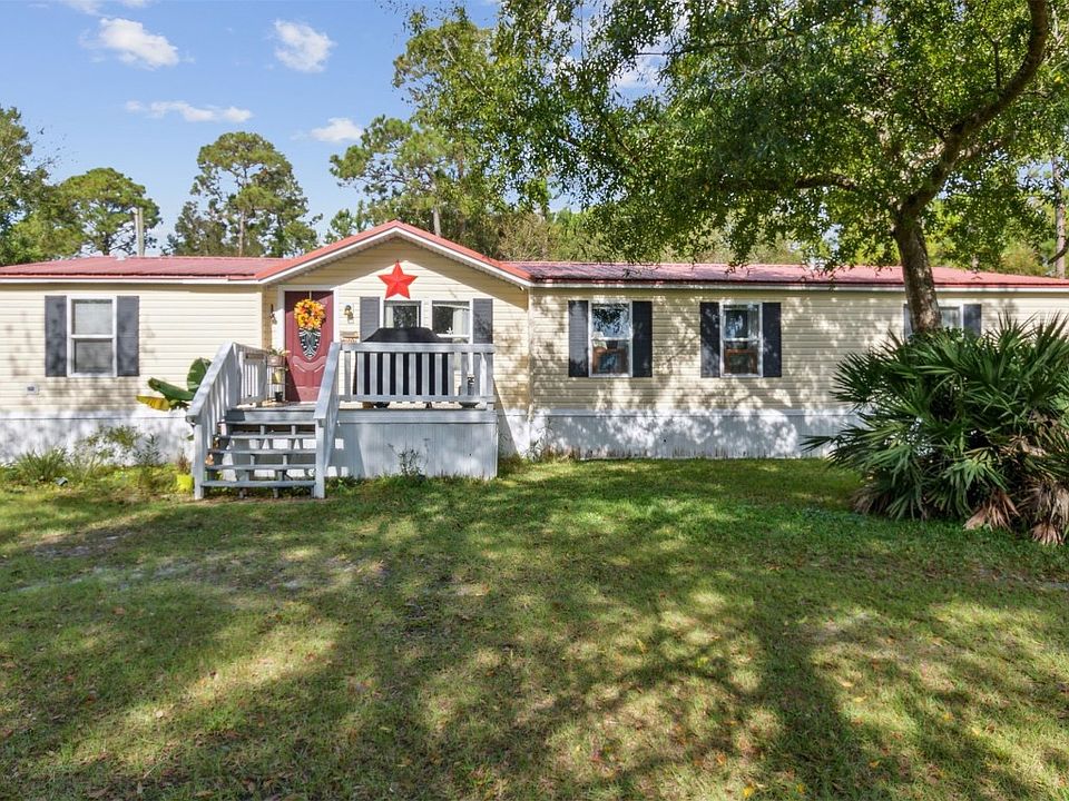 FINANCING AVAILABLE SELLER MOTIVATED! NEW Driveway not pictured recently installed. Discover tranquility in this meticulously REMODELED 4-bedroom, 3-bathroom home nestled on a private, nearly one-acre lot. Updated large kitchen overlooking the spacious backyard. The master suite offers a luxurious escape with double sinks, a tiled shower, and ample storage. The spacious layout, modern bathrooms, and move-in-ready condition make it perfect for modern living. The outdoor oasis features a small koi pond, ample gardening space, and a covered back deck. Two outdoor sheds, one with power, provide versatile storage. This home has a private ground well with a new water softener system. Located close to shopping, the beaches of Amelia Island and the international airport in Jacksonville.