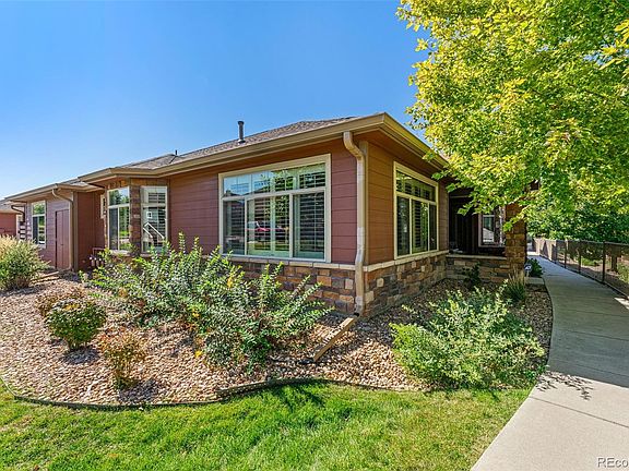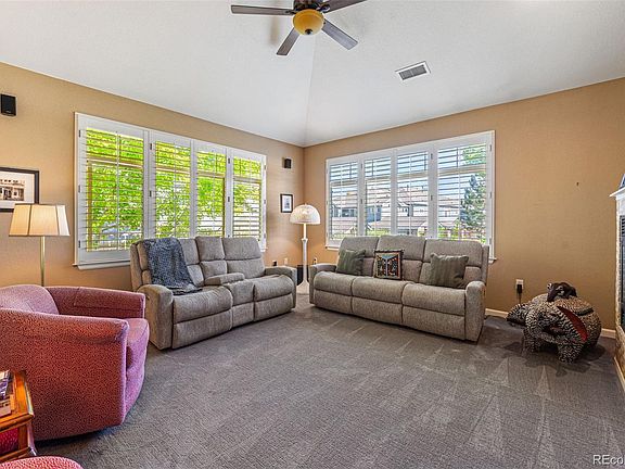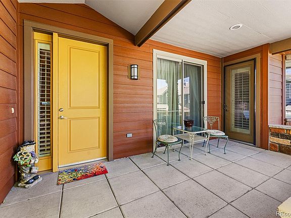 Rare private, quiet, secluded end unit that will make you feel like you are in a patio home. NO STAIRS. Original owner. Most desirable floorplan in the Unit A. Gated community with outstanding amenities in Highlands Ranch. Unique open and spacious floorplan with soaring high vaulted ceilings. Living room has a gas fireplace, windows all around. Open kitchen with granite and oversized eating bar. Wet bar. Extra family room exits to private enclosed patio courtyard great for entertaining or pets. Primary bedroom is large with gas fireplace, vaulted ceiling, ensuite bath and huge walk in closet with custom built-ins. Secondary bedroom with adjacent five piece bath has bonus room attached which also walks out to enclosed patio and is separate and private from the primary bedroom. Wonderful den or third bedroom with glass French doors and closet and bay window. So many options with this floorplan. Large 2 car attached garage. Residents enjoy a 30 acre park with sidewalk for walking, large year round hot tub. Fitness center includes gym, pool, basketball, pickleball, volleyball, racquetball, horseshoes, baseball diamond, putting green, dog park, full frisbee golf course and children's playground equipment. Must check out the amenities and walk around. Easy guest parking right next to unit. Low-maintenance, resort-style living. RESTAURANT COMING SOON EARLY 2005 AT THE IRON HORSE REC CENTER. You will be sold the minute you walk through the front door!
