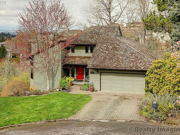 This special home is perched above Forest Heights ona quiet cul-de-sac. A peaceful, natural setting full oflight w/windows facing greenspace & westerly views.Main floor flows easily from welcoming entry tothe open, vaulted living room w/hrdwd floors,stone fireplace, walls of windows, & access to expansivemahogany deck. With formal dining room & updatedchefs kitchen, it's an entertainers dream. Upperlevel master suite features spa-like bathroom & sweeping valley views. See virtual tour [Home Energy Score = 2. HES Report at https://rpt.greenbuildingregistry.com/hes/OR10183400]