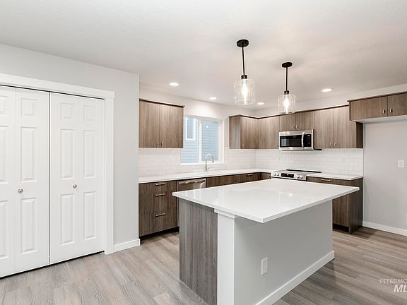 Enter into a brand new home in Kuna, Idaho and enjoy its benefits and stress free living! Embrace extra space with everything the Columbia 2530 has to offer! Multiple living spaces throughout the home provide unlimited options in how you use them. The main level contains a living room, a gathering room, and a study, while the upstairs hosts all 4 bedrooms plus a loft space. The kitchen comes with stainless steel appliances and stylish solid surface countertops, adding both functionality and aesthetics to the kitchen. Retire upstairs and luxuriate in the expansive primary suite, which includes a generous walk-in closet and an en suite bathroom with dual vanities and a soaker tub. All four bedrooms upstairs are thoughtfully arranged to be set apart from each other. Build your perfect life in the Columbia. Photos are of the actual home!