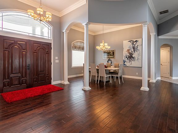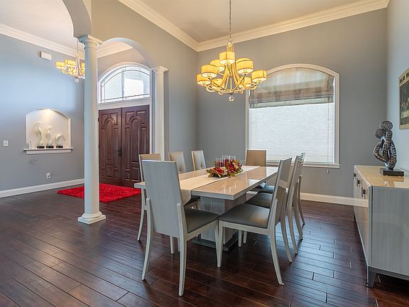 - Breakfast Bar, Kitchen Island, Pantry, Sound System, Walk-In Closet(s), High Ceilings, Stone Counters, Eat-in Kitchen, Formal Dining Room, Crown Molding, Bookcases, Entrance Foyer, Tray Ceiling(s), Open Floorplan, Bar, Tub/Shower Combination, Stand Up Shower, Split Br Floor Plan, Utility Sink, Custom Cabinetry