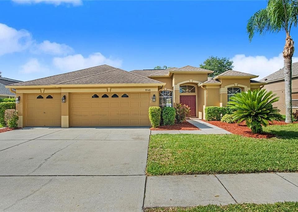 Come see this outstanding 4BR/3BA/3CG pool home in the Trinity neighborhood of Thousand Oaks!! NO FLOOD INSURANCE. Split plan has been immaculately maintained and is move in ready. Front door entry opens to a light and bright living & dining room combination with high ceilings and wood floors through out. Spacious Master bedroom to the right has walk in closets and bathroom with double vanities, garden tub, walk in shower, and plenty of cabinet and counter space. Large open concept eat in kitchen has stainless appliances and looks out over the family room and backyard pool area with slider access to the lanai. Plenty of cabinet and counter space including an island with eat at bar top. Guest bedroom and bathroom off the family room would be great for a mother-in-law suite. Hallway off the kitchen leads to two other guest bedrooms, third bathroom, and laundry room with access to the three car garage. Home is built to entertain and all rear sliders open to a gorgeous screened in pool and patio area and large fenced in back yard. A/C 2016, Hot water heater 2018. This fantastic neighborhood is zoned for great schools including J.W. Mitchell High. Short distance to great shopping, restaurants, and the Trinity Medical Center. Thirty minutes to the beaches. Don't let this great opportunity get away!