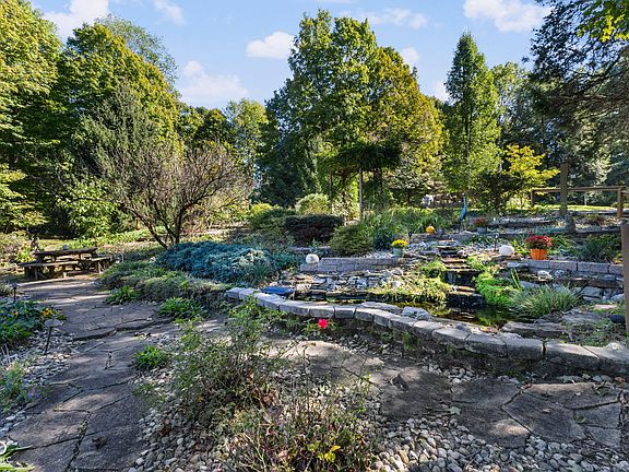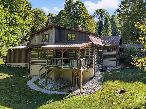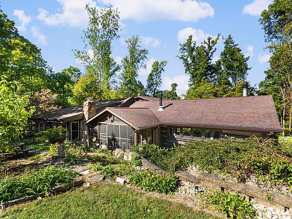 Tucked away down a private lane behind the renowned Link Observatory, this extraordinary log home rests atop a secluded 23-acre hilltop retreat. What began as a humble cabin has been lovingly expanded over decades by the owner, using timber harvested right from the land itself-making this home truly one of a kind. Step inside to find rich hardwood floors and handcrafted details at every turn. Each room reveals its own personality, from the cozy nooks to the sun-drenched solarium that fills the home with warmth and natural light. The spacious kitchen showcases Amish-made cabinetry, dual sinks, and abundant counter space-ideal for meal prep, entertaining, or gathering with friends and family. At the heart of the home lies the stunning great room-an entertainer's dream-featuring soaring vaulted ceilings, a dramatic wood-burning fireplace, and a custom-built bar perfect for gatherings. Three additional freestanding wood stoves add both warmth and rustic charm throughout the home. The main-level primary suite offers a peaceful retreat with an ensuite bath, a generous walk-in closet connecting to a private office or secondary bedroom, and direct access to the outside. Outside, the magic continues. Multiple decks and a screened porch invite you to take in the surrounding natural beauty from every angle. Several outbuildings provide plenty of space for equipment, ATVs, or hobbies, while several trails wind through your private wooded paradise. The elevated setting offers breathtaking views that rival any mountain cabin-panoramic fall foliage, spectacular sunsets, and even distant fireworks on clear nights. Here, you'll experience nature at your doorstep without sacrificing modern comfort. A property of this caliber is rarely available. This is more than a home-it's a legacy, built by hand and meant to be che