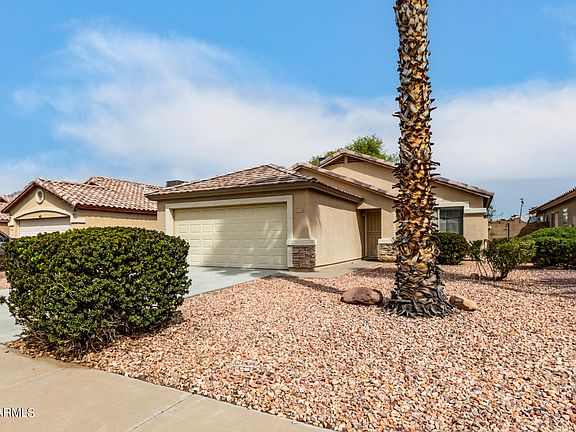 Home, sweet home! Located at Fairmont Community - in the vibrant heart of Peoria, this charming residence epitomizes comfort and convenience. Offering 3 bedrooms, 2 bathrooms, a well-manicured landscape, and a 2-car garage w/attached cabinetry. Discover an inviting interior showcasing vaulted ceilings, abundant natural light, a two-tone palette, and tile flooring w/laminate in bedrooms. If entertaining is on your mind, you'll love this perfectly flowing layout! The kitchen features stainless steel appliances, chic track lighting, and dark wood cabinetry. The primary bedroom has a walk-in closet and a full bathroom for added ease. Transitioning outdoors, tranquility awaits in the backyard! It provides mature trees, a grassy area, and an open patio to relax or enjoy BBQ. Ready to move in!