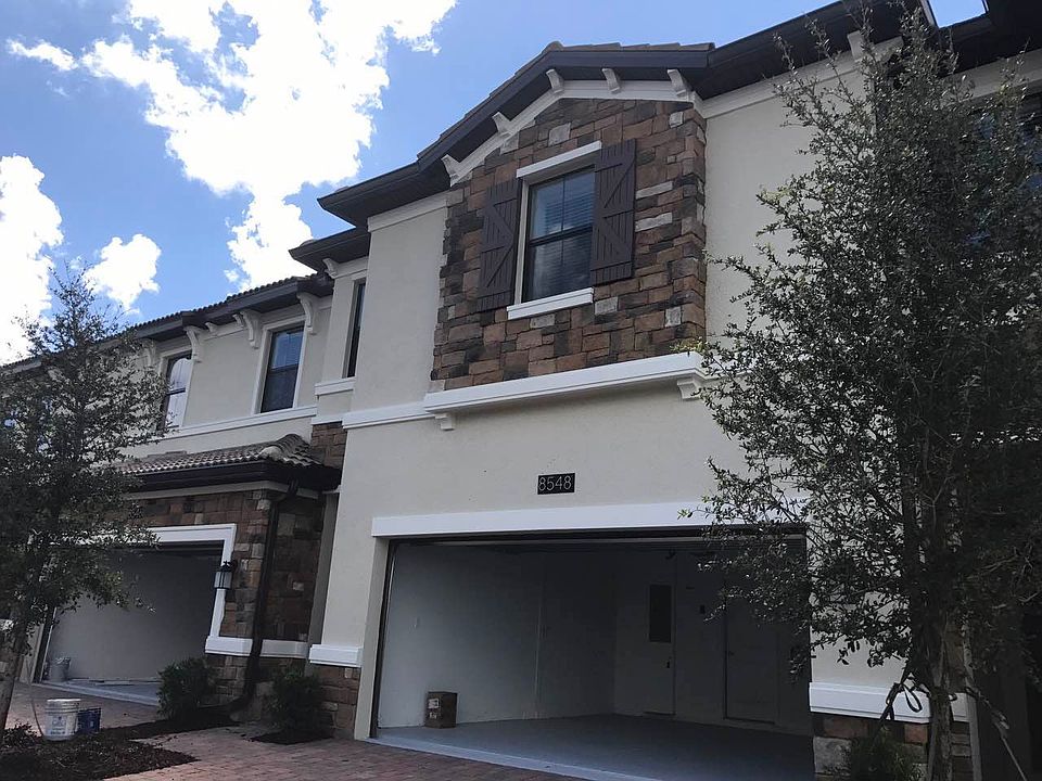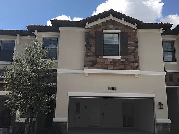 This ready to move in town house in the Vistas at ChampionsGate contains 4 bedrooms, 2.5 bathrooms, tile floor throughout the first floor, stainless steel appliances, upgraded 42" cabinets with granite counter tops, a central kitchen island and the open floor concept plan is great for your family to have quality time together. All bedrooms are on the second floor. The master bedroom has a walk in closet; bathroom has a garden tub and separate showers. The laundry units are on the same floor as the master bedroom. This house also features basic cable, telephone and internet. This is a gated community with a resort style heated pool and jacuzzi, golf simulator, fitness room, game room, catering kitchenette, and saunas. This community also features a beautiful view from the golf course. It is also 2 minutes from I-4, 15 minutes away from Disney World, and close distance to supermarket and restaurants.