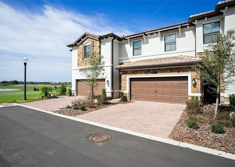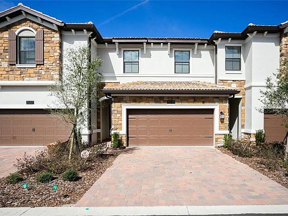 Welcome to The Pineapple Place at Champions Gate! A Luxurious 3 Bedroom 2 and a half Bathroom Townhome with a 2-Car Garage and partial Golf Course View! Upon arrival, you are greeted with Brick Paver Driveway, Stone Veneer and Tile Roof giving this Townhome and Elegant Look! Inside you will find Quartz Countertops in the Kitchen and Bathrooms as well as Ceramic Tile throughout the main living space! Spacious bedrooms and a Tub and Stand-Up Shower in the Master Bath. The Champions Gate Community is a Gated Community that features resort style living! Resort style pool with lazy river, slides and jacuzzi, gym, Gold Similutor, Game Room, Clubhouse, Saunas, volleyball and tennis courts and a whole lot more! Maintainace Free Living! Prime Location! Mins away from I-4 with access to Disney, Universal, Downtown Orlando, SeaWorld, International Drive, Airport, Restaurants, Shopping etc. This home is booked on AirBnB until March with limited availability for showings and comes with all the bookings until time of sale that can be transferred to the buyer.