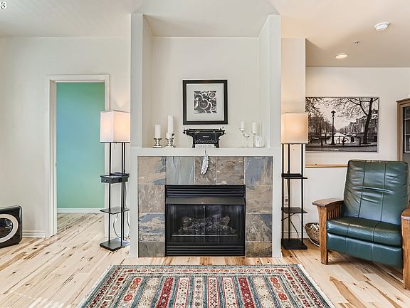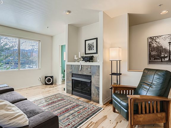 Townhouse style condo in the heart of St. Johns! Corner unit features an open floor plan with great natural light, living and dining areas, breakfast bar, mini split/AC, balcony, newer engineered hickory hardwood floors, master bedroom with bath, walk-in closet and mini-split (A/C), laundry closet upstairs, view of St. Johns bridge, storage under stairs and in garage. Walk score 92, bike score 93! Just move in and enjoy the parks, restaurants and shops that the neighborhood has to offer!