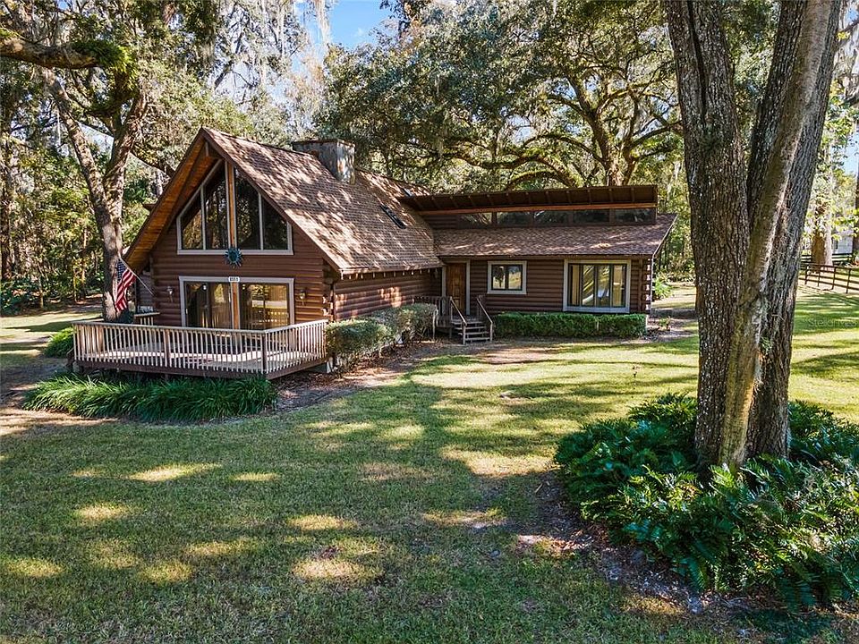 Don't miss out on this exceptional opportunity to own 4.38 acres of prime real estate in the sought-after SE Ocala area! This custom-built home is nestled in the prestigious Turning Hawk Ranch community and boasts breathtaking lake views from its front windows. The previous owner, a skilled carpenter, has added unique woodwork features that must be seen to be appreciated. The main house offers 3 bedrooms, 2 baths, a cozy wood-burning fireplace in the living area, a formal dining room, and a split floor plan. The upstairs office/loft is flooded with natural light through stunning A-frame windows. In addition, there is a lucrative income-generating 2-bedroom, 1-bathroom, 1,440 sq. ft. apartment located above the detached garage. With limitless possibilities, this property is truly a canvas for you to create your own dream oasis. Don't let this rare gem slip away!