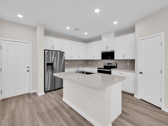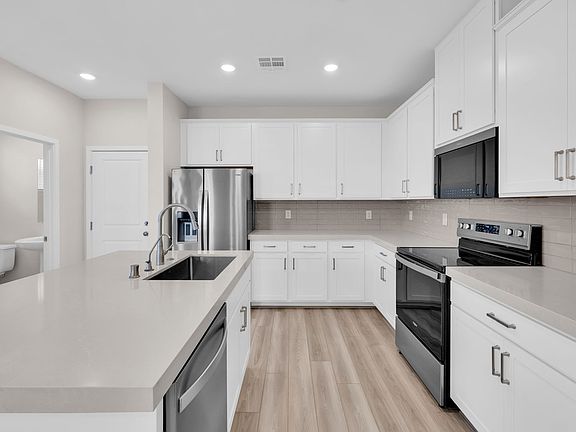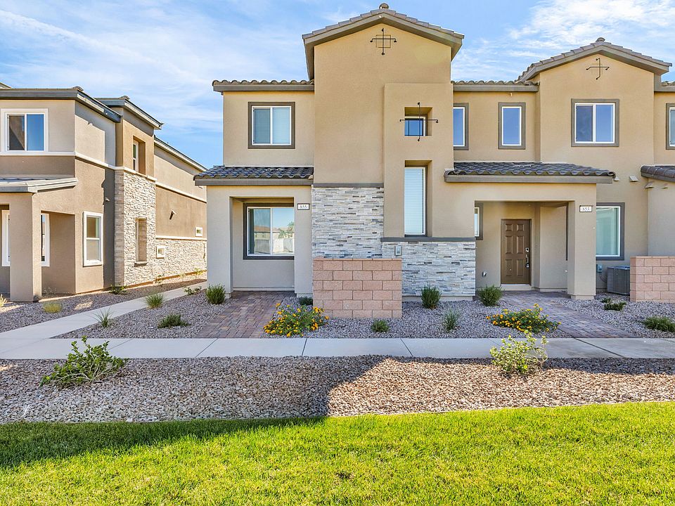 This remarkable opportunity to reside in a brand-new community designed for modern living and enhanced convenience. This 3 bedroom 2.5 bathroom smart home offers state-of-the-art technology for effortless management of your daily life, including remote control door locks and remote garage door opener, all from your phone, ensuring both comfort and security. Step inside, and you will encounter a spacious layout accentuated by an abundance of natural light. The kitchen stands out with its stainless steel appliances, an island perfect for meal preparation, and sleek 42" shaker cabinetry to provide ample storage. The open-plan living area seamlessly connects to the dining space, ideal for hosting gatherings or enjoying quiet evenings. Each bedroom is thoughtfully designed with bluetooth enabled ceiling fans. The primary bathroom features dual sinks and a modern design that enhances functionality and comfort. An added bonus is the tankless water heater, ensuring you enjoy uninterrupted hot water whenever you need it. Perfectly located, this home is just across the street from Henderson Hospital and Cowabunga Bay, providing you with essential services and entertainment options right at your doorstep. Moreover, the proximity to the Galleria Mall and Costco, along with easy access to the I-11 and I-215 freeways, means that shopping and travel are within quick reach. This property exemplifies contemporary living in a vibrant community, making it an ideal choice for anyone seeking a blend of comfort, convenience, and security.