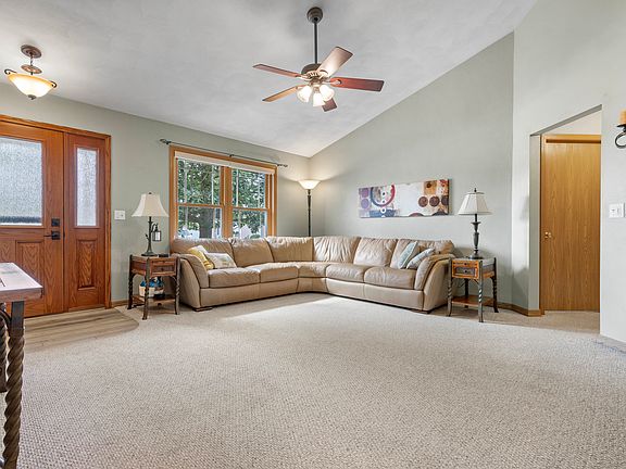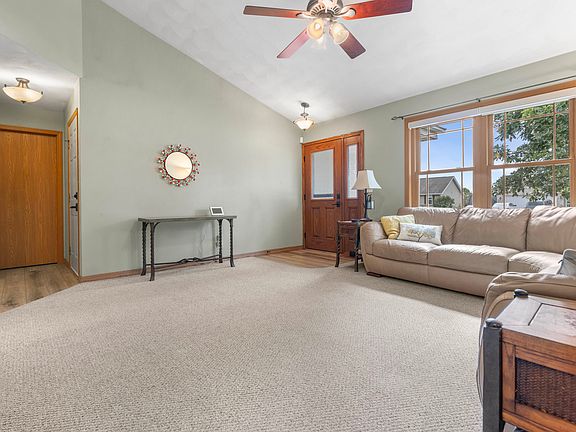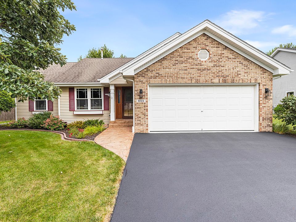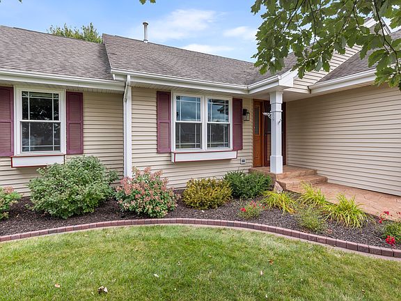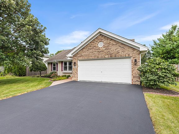 Discover this meticulously maintained ranch home, offering over 2,000 square feet of beautifully finished living space. As you approach, the recently updated stamped concrete walkway guides you to the inviting front door. Step into the great room, where natural light floods the space, highlighting the vaulted ceiling, custom blinds, and neutral carpeting. The recently updated eat-in kitchen is a chef's dream, featuring elegant maple cabinets with crown molding, dovetailed soft-close drawers, luxurious quartz countertops, and a stylish tile/glass backsplash. Stainless steel appliances, luxury vinyl plank flooring, and both uplighting and under-counter lighting complete this modern kitchen. For a sleek, clean look, pop-out outlets are seamlessly integrated throughout the kitchen. A sliding door off the kitchen leads you to a private backyard oasis. The primary bedroom is a serene retreat with ample closet space, abundant natural light, and a stunning en-suite bathroom. The bath has been recently updated with quartz countertops, a raised vanity, and a luxurious shower with glass doors. The two additional bedrooms are located on the opposite side of the home, ensuring privacy for all. They share a beautifully updated full bathroom, with all three bedrooms boasting custom blinds. Conveniently located off the two-car garage is a spacious laundry room. The lower level of the home is fully finished, offering a large family room complete with an elliptical, entertainment center and TV that stay with the home. Additionally, there's a well-appointed office with built-in bookcases and shelving, a a multi-use room, and another full bathroom. The exterior of this home is just as impressive as the interior. The front yard has been recently updated with beautiful edging, while the private, fenced backyard is a true outdoor retreat. Enjoy the expansive multi-level deck with a pergola, unwind in the hot tub, or utilize the two storage sheds for all your needs. The yard has been professionally maintained by Naturescape, with the final weed control application scheduled for November. For added peace of mind, the home is equipped with an ADT security system, including a moisture alarm for the basement. This home is a perfect blend of modern updates and comfortable living, ready for you to move in and enjoy. Don't miss the opportunity to make this stunning ranch home yours!