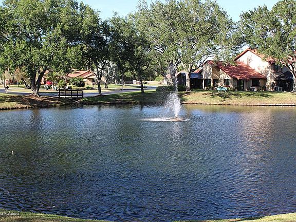 The wonderful neighborhood of country club vista offers amazing views of the lake and fountain with big beautiful trees all over. A nice bridge overlooking nature at its finest. The community has a very nice pool and club house along with a tennis court. This 3 bed 2.5 bath has a very nice floor plan with new vinyl flooring and tile throughout with a large screen room. (Master bedroom downstairs). Newly remodeled kitchen and new appliances. New A/C. 2 parking spots in the driveway which is rarein this community.