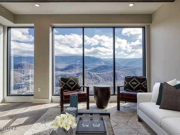 The Highlands of the Smokies is a new mountain-top development with breathtaking, mountain-modern designs, featuring 95 luxury condos to be built in four phases. Phase one is the first offering and is currently under construction, scheduled to be completed in April 2024. Every unit boasts amazing mountain views of the Smokies and an open floor plan. With 10' ceilings and full glass, floor to ceiling living room and master bedroom walls, the overall grand feel of the Great Smoky Mountains will also live inside your home. Experience the mountains with resort luxury and turnkey solutions, with an-on site office to attend to you and your guests needs. Elevators will carry you to your home floor and to higher views. Units will be turn-key, tastefully and fully furnished. The quality of the fixtures, flooring, cabinetry, doors, windows, railings and finishes are all first rate. The pool and common elements are stunning, overlooking what's been said to be the best view in all of Gatlinburg. The pool and common elements will be completed with phase one. Unit #309 is on the 3rd floor and is plan A, which is a 2 bedroom, 2 bath, with an in-unit washer and dryer and a direct view of Mt. LeConte. The master bath features a walk-in closet, walk-in custom tile shower, freestanding tub, double vanities and private water closet. It's a thoughtful design, showcasing the setting with open spaces, ample room sizes and practical storage options. The open kitchen features solid surface counter tops, high quality cabinetry and a spacious bar. First quality engineered wood flooring will be featured throughout the unit, complimented by stylish tile in the bathrooms. Note that the square footage listed includes the covered balcony. Pre-construction reservations are available now with a 10% non refundable deposit, due at reservation, with a 15 day right of recision period. 80% financing with up to 30-year amortization is available, as are other financing options. There will be an on-site rental company available for all owners offering a 70/30 split, with a required furniture package priced at $1800. No outside rental management companies permitted. This is a rare opportunity to get in on the "ground level" of a premier destination resort property. Reserve yours while supplies last.
