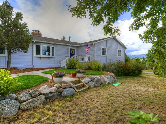 This beautiful rancher, is set on a huge corner lot with views of the mountain range. Inside is open, with rich hardwood floors and high ceilings. The two sided fireplace is quite a centerpiece for both the Great and Dining Room. The kitchen has great cabinet and counter space, along with stainless steel appliances that include a double oven. Walk out from the dining room on to an over sized deck, a wonderful place to relax and enjoy the views of rolling grass lands and mountains in the distance. The master suite is large and comfortable. It has it own wonderful master bath, that includes a free standing soaking tub walk complete with barn door style shower. The master, opens up to a deck for your enjoyment of the beautiful sunsets. There are also two more full baths and a half bath included in this home. Totally this home has 5 bedrooms, three up and 2 downstairs. The Game Room walks out to the back yard. There are storage areas as well as a Office and Work shop area with a sink.