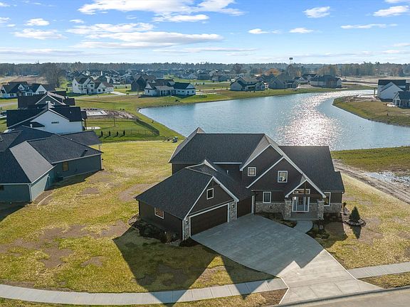 Welcome to Bob Buescher's premier Model Home, which is located in Cascata Estates and is available to view & purchase. Positioned on a large body of water, with beautiful fountains, this elegant estate style home features a luxurious open layout containing 4 bedrooms, 2 offices, 3.5 bathrooms, and 3,113 sq ft of livable space. Magnificent water views are captured by the expansive and well appointed window placement, which additionally provides an abundance of natural light. The great room displays an opulent cathedral ceiling with wood beam and a floor to ceiling stone fireplace; which is anchored by windows on each side, open shelving & built in cabinetry. The kitchens layout & design makes all the difference in a home. Our white maple perimeter cabinets are set at the perfect height on a 9ft ceiling, while the appliance placement is designed for ease of use. Anchored by Quartz counter tops, and a 3X7 island, our kitchen is directly open to the dining area and great room. Tucked away for privacy, our primary bedroom suite is down the hall and behind the main living space. Generous in size, the adjoining spa like bathroom features an oversized tile walk-in shower, private water room, double vanity with cultured marble top, transom window, and an oversized walk-in closet. As you head up to the second level, you'll appreciate the elegant open railed stair case, and quickly recognize the large amount of living space, which includes 3 additional bedrooms, 2 bathrooms, office, bonus space, and attic access. This home features an oversized 964 sq ft garage, & large rear covered porch with additional patio; the perfect place to create long lasting memories with those you love. Close to walking trails, shopping, restaurants and Parkview Hospital in the award winning Northwest Allen County school district!