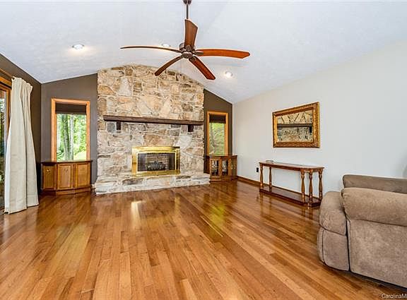 Your perfect mountain retreat awaits in the gorgeous golf course community of Springdale Estates. You'll LOVE all that this sweet rustic abode offers from its beautifully landscaped yard on over half an acre to impressive interior finishes throughout. Massive wrap-around screened porch grants sweeping mountain views to fill your soul with joy and wonder. Inside, you'll appreciate the stunning stone fireplace in the living room w/ amazing views through adjacent vast porch. Huge kitchen boasts high-end stainless steel appliances w/ enough space to cook or entertain to your heart's delight. Master suite & bath make every day feel like a spa day! 2 bonus rooms w/ closets in lower level along with potential 2nd master bedroom or living room that includes a 2nd propane fireplace. Small kitchen completes private 2nd living quarters below. 10 min to downtown Waynesville shopping and only moments to hiking, camping, fishing, picnics and mountain scenery in the wonderful Pisgah National Forest.